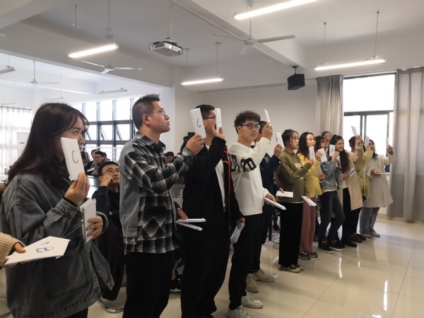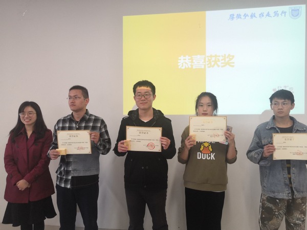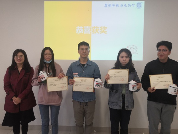本次知识竞赛分为一站到底、限时答题和巅峰对决三个环节,采取个人竞赛和团体竞赛相结合的形式。同学们热情高涨,在赛前都做了非常充足的准备,经过紧张而激烈的三轮比赛后,最终许蒲城等四位同学获得了胜利。陆老师为第一名团队颁发了一等奖奖状及奖品——南邮定制U盘,为第二名团队颁发了二等奖奖状及奖品——复古搪瓷杯,并向获奖的各位同学表示祝贺。